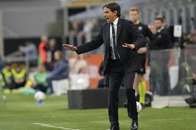 Pelatih Inter Milan, Simone Inzaghi. (c) Spada/LaPresse via AP Dalam wawancaranya di DAZN seakhir laga, Inzaghi tidak membela diri atas kartu merah tersebut.